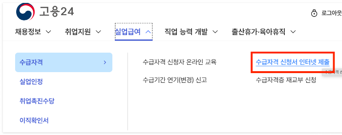이제 ‘고용24 홈페이지’에서 실업급여 신청 절차를 진행해야 합니다.